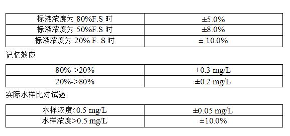 測(cè)定下線:0.05mg/L(示值誤差±30%)零點(diǎn)漂移:±5.0%